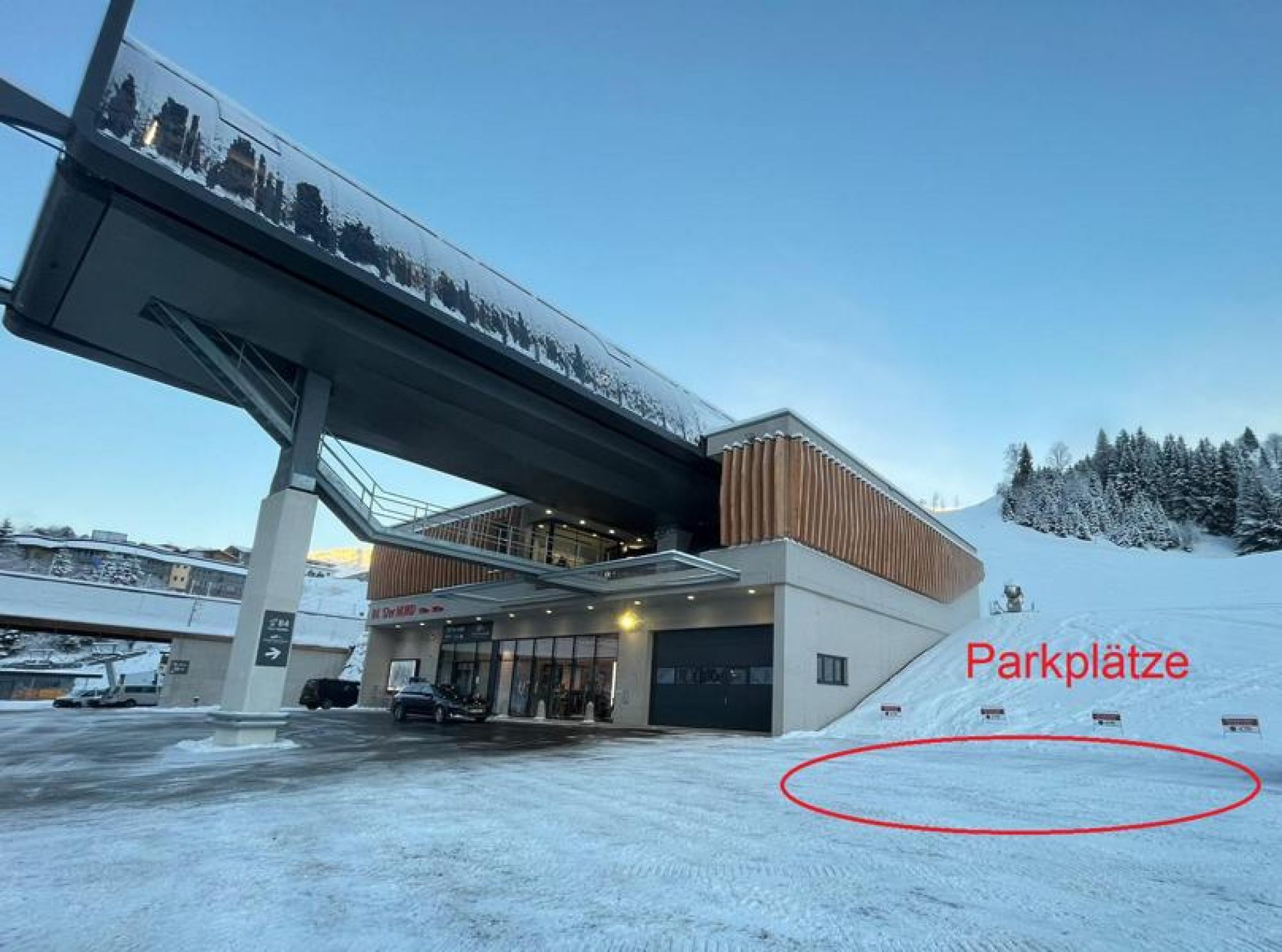 Mit dem Auto zur Zwölferkogel Nordbahn fahren und rechts neben der Station parken.